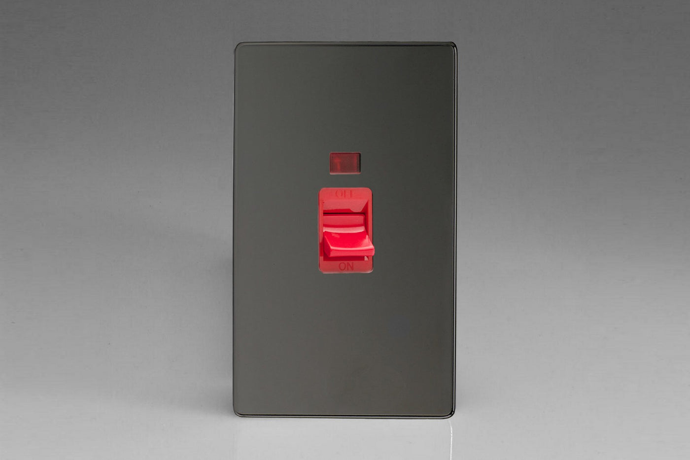 Varilight XDI45NS - 45A Cooker Switch + Neon (Vertical Twin Plate, Red Rocker)