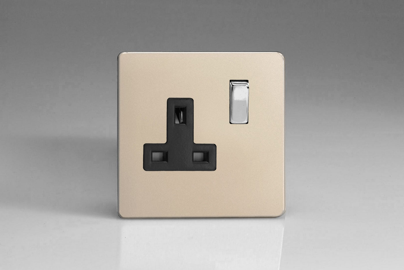Varilight XDN4BS - 1-Gang 13A Double Pole Switched Socket with Metal Rockers
