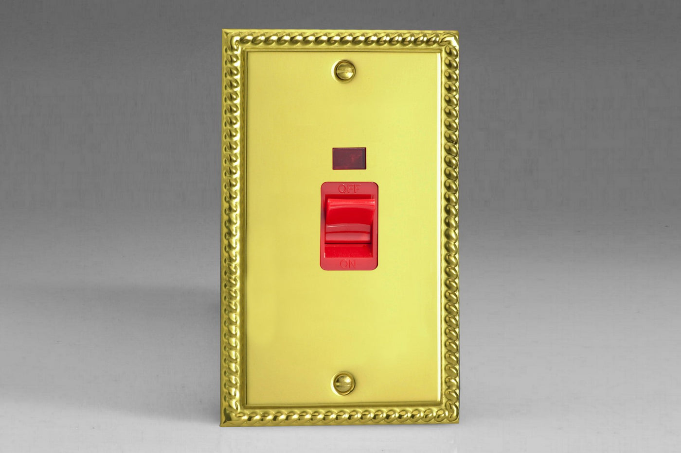 Varilight XG45N - 45A Cooker Switch + Neon (Vertical Twin Plate, Red Rocker)