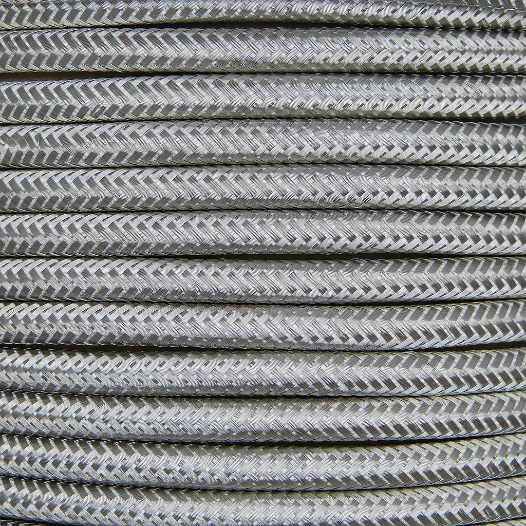 01016 Round Metal Braided Flex 3 core 0.5mm Silver, mtr