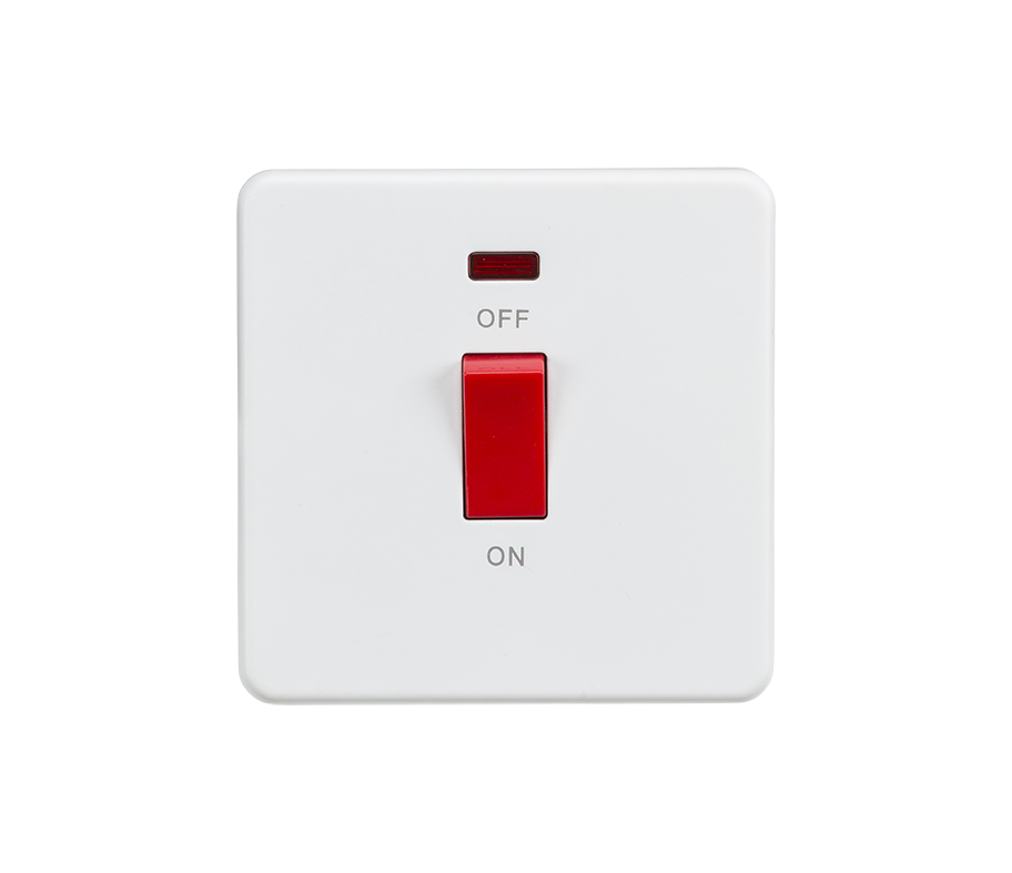 Knightsbridge SF8331NMW Screwless 45A 1G DP Switch with Neon - Matt White