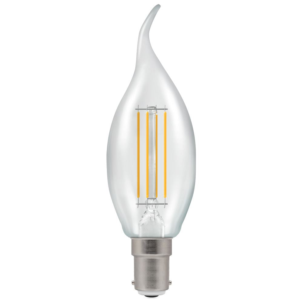 Crompton 12141 - LED Bent-Tip Candle Filament Clear • Dimmable • 5W • 2700K • SBC-B15d
