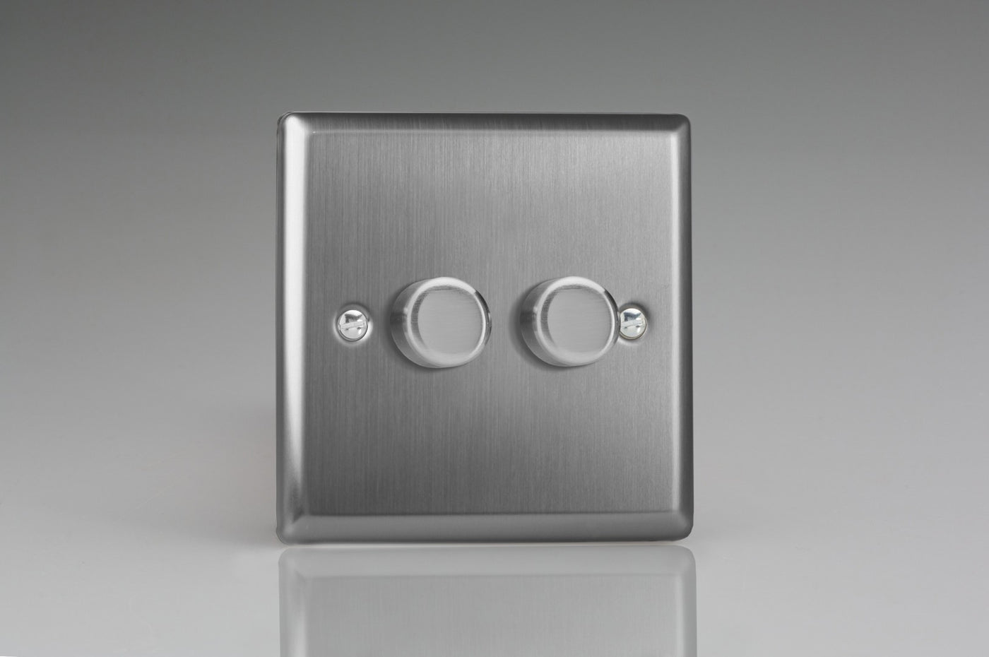 2-Gang 1-Way Rotary Dimmer 2 x 40-250W, V-Dim dimming technology, Ideal for incandescent lighting including mains and low voltage halogen , Ideal for incandescent lighting including mains and low voltage halogen .