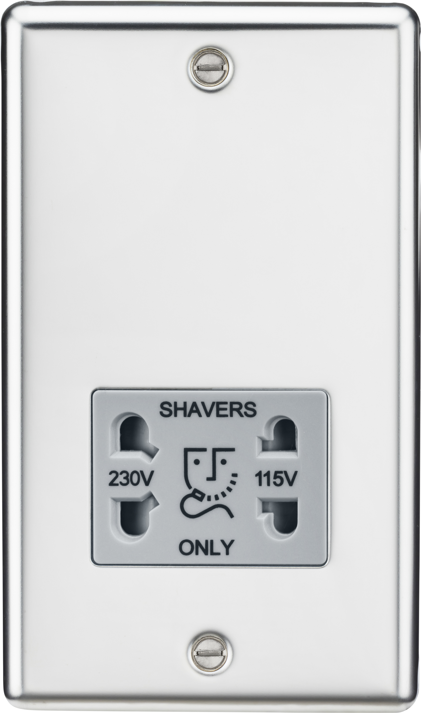 Knightsbridge CL89PCG Polished Chrome Dual Voltage Shaver Socket - Grey Insert Rounded Edge