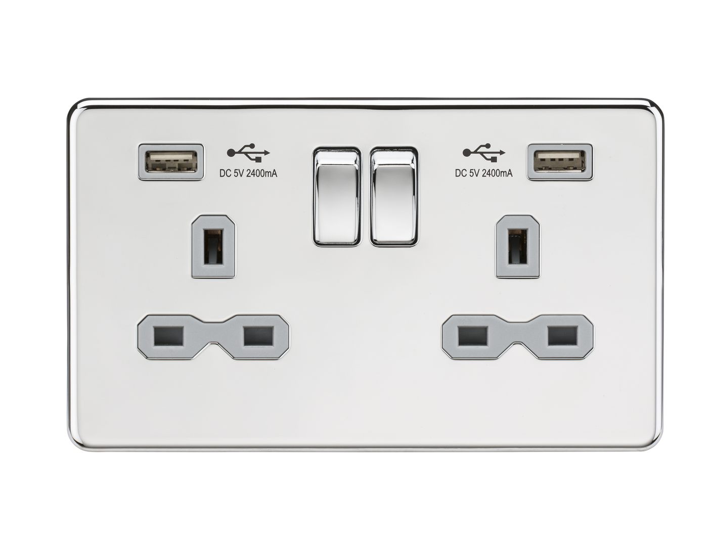 Knightsbridge SFR9224PCG 13A 2G Switched Socket with Dual USB Charger (2.4A) - Polished Chrome with Grey Insert