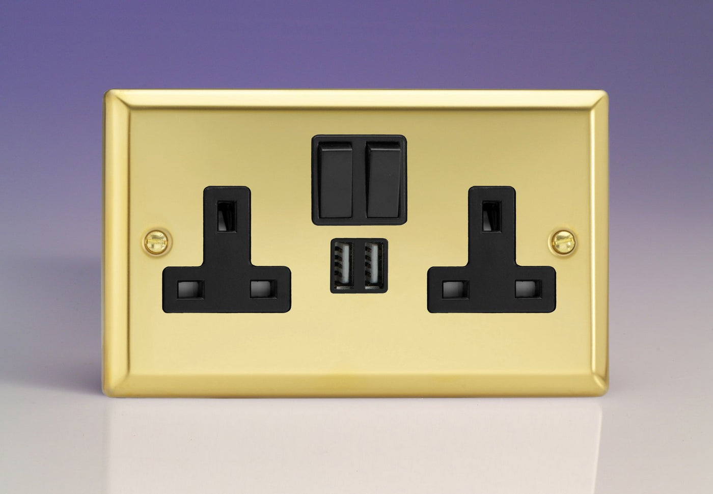 Varilight XV5U2SB - 2-Gang 13A Single Pole Switched Socket + 2x5V DC 2100mA USB Charging Ports