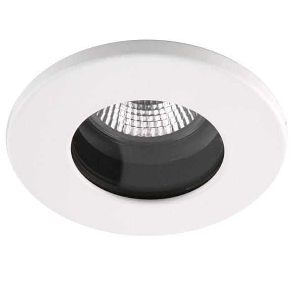 Fire Rated IP65 LED Downlight in White with a Tungsram 5W Warm White GU10 35 Degree Dimmable