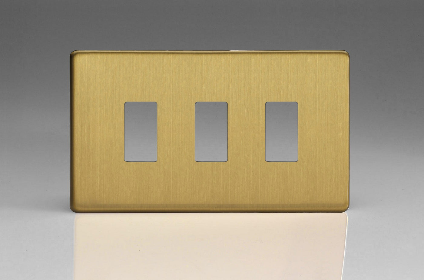 Varilight XDBPGY3S - 3-Gang Screwless PowerGrid Plate including Yoke (Twin Plate)