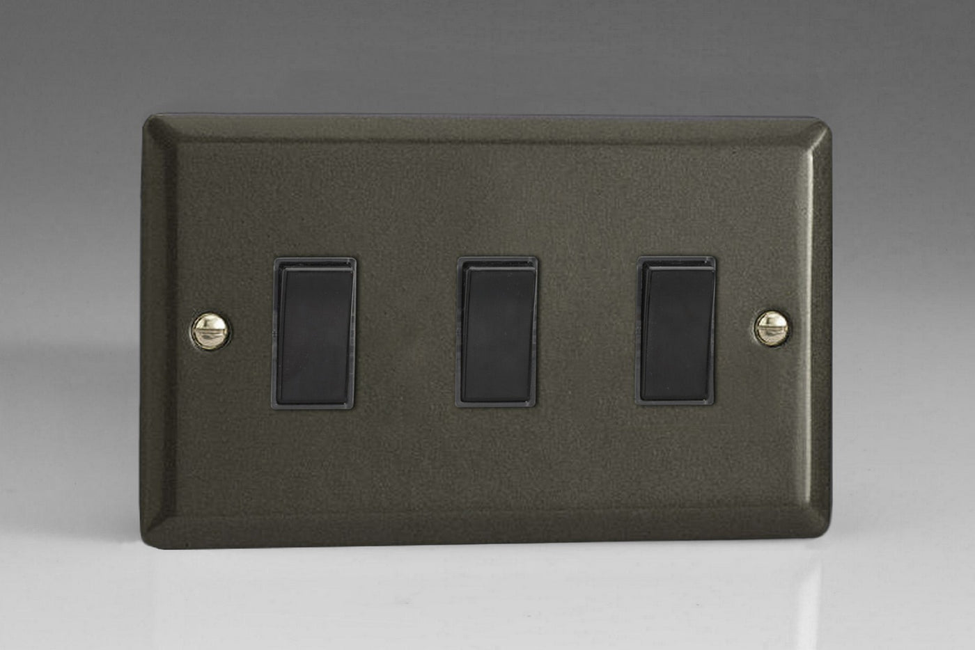 Varilight XP93B - 3-Gang 10A 1- or 2-Way Rocker Switch (Twin Plate)
