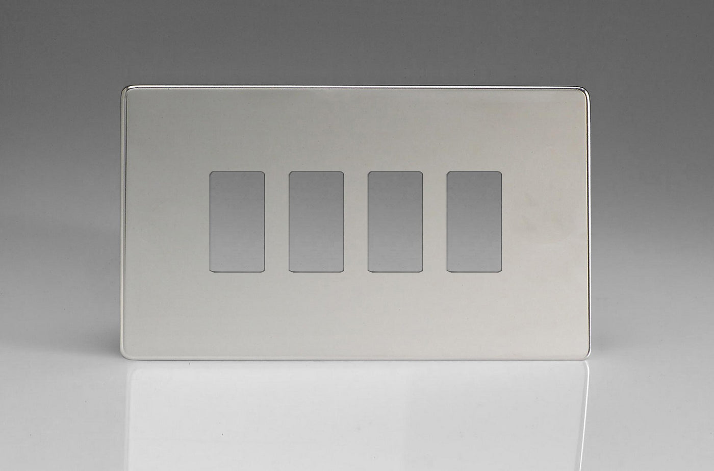 Varilight XDCPGY4S - 4-Gang Screwless PowerGrid Plate including Yoke (Twin Plate)