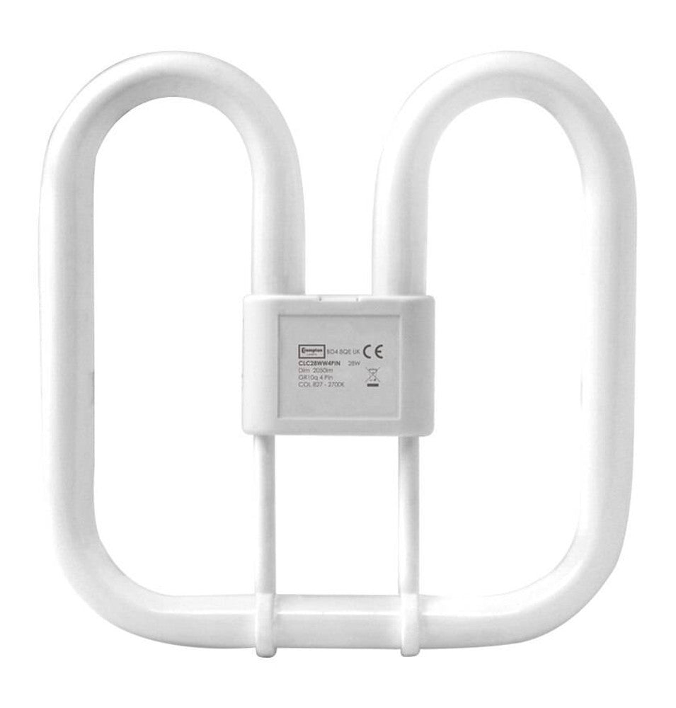 Crompton CLC28WW4PIN GR10q 28W 2D Warm White Light Bulb. Manufacture Code: CLC28WW4PIN. GTIN: 5018986674271
