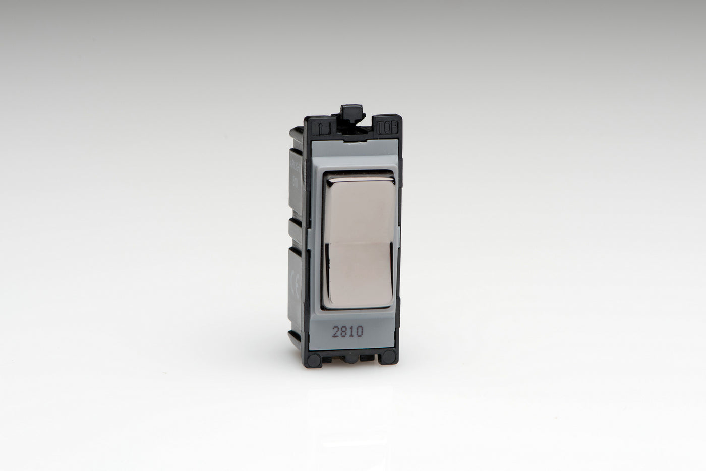 10A 2-Way & Off Retractive Switch, Modules suitable for all PowerGrid frontplates, Retractive, push to make switch, Retractive, push to make switch.