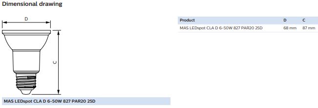 76846100 - Philips - MAS LEDspot CLA D 6-50W 827 PAR20 25D