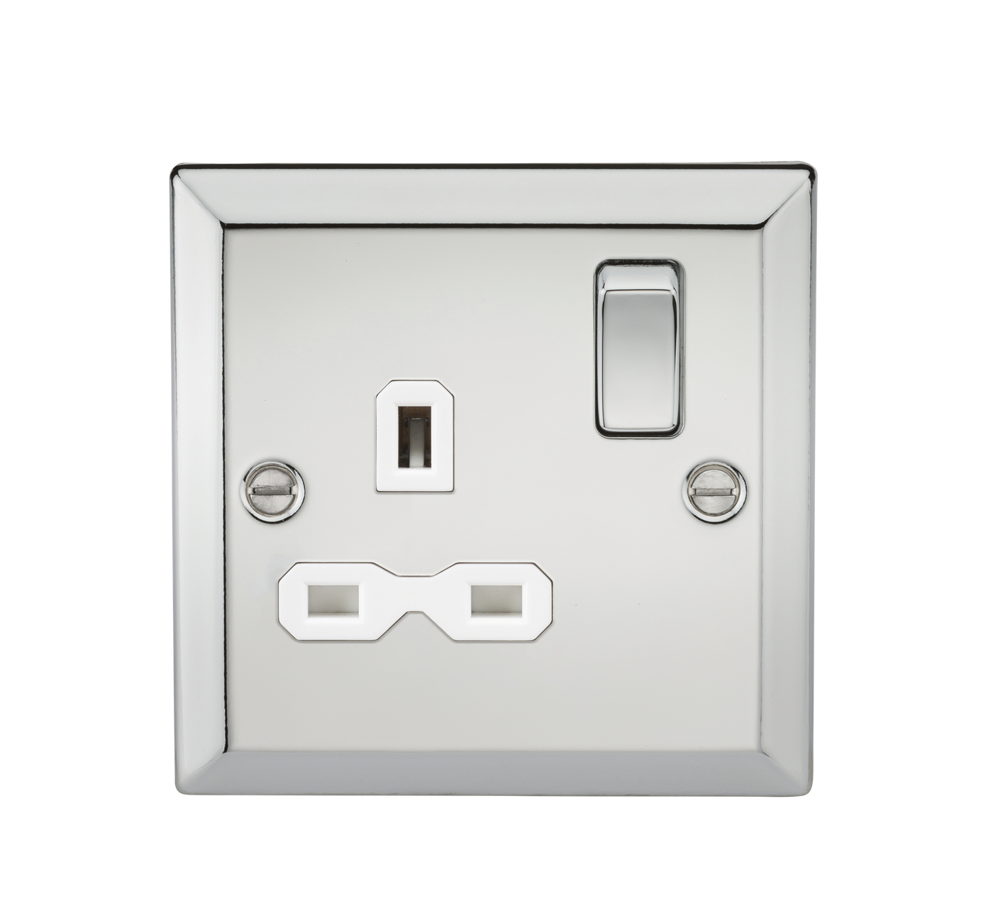 Knightsbridge CV7PCW 13A 1G DP Switched Socket with White Insert - Bevelled Edge Polished Chrome