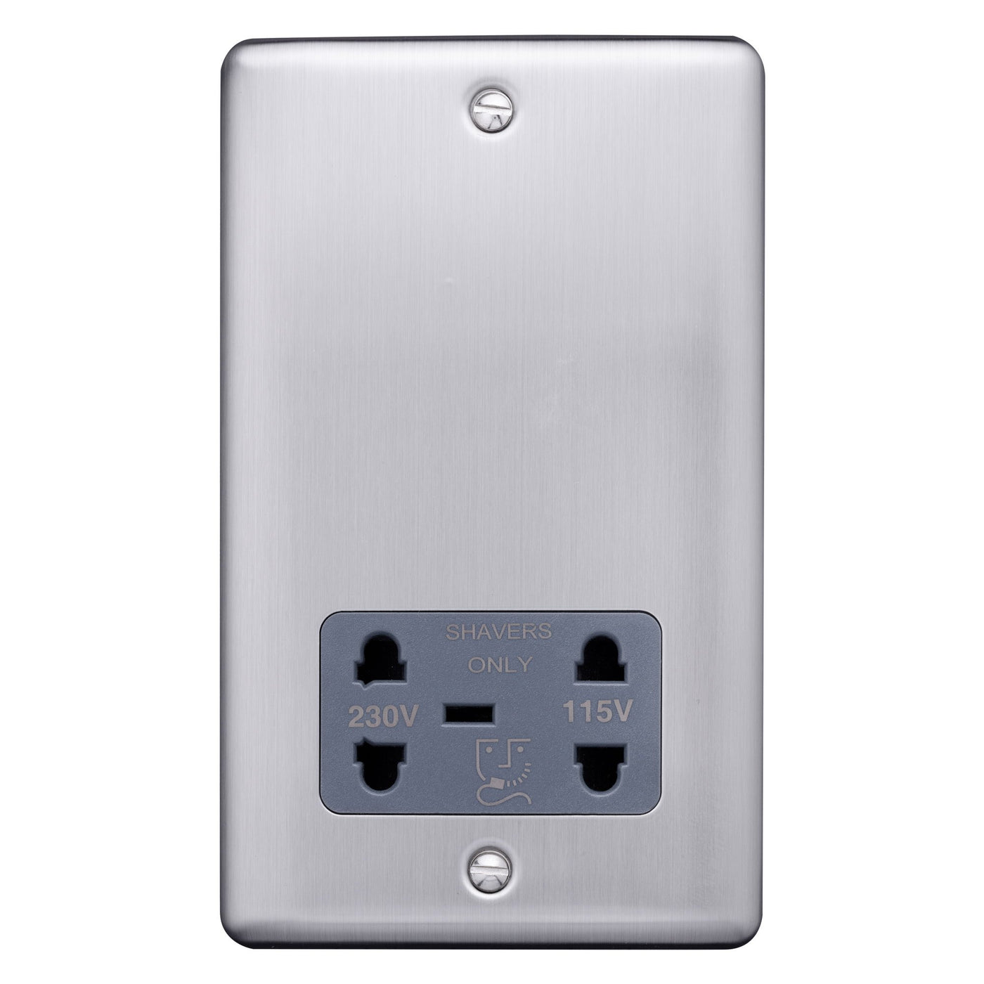 Caradok Shaver socket Brushed Chrome, Metal Switch, Grey Insert