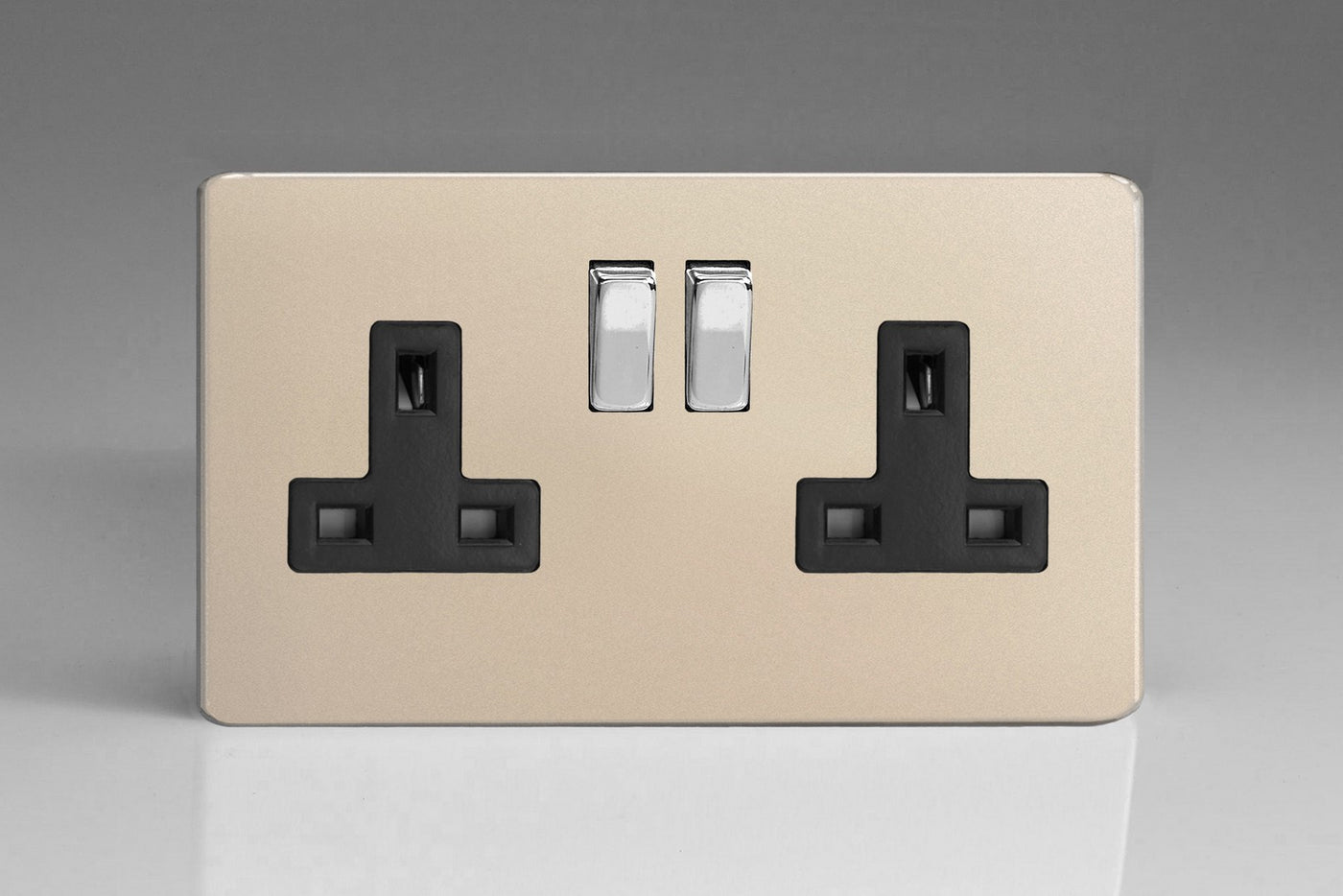 Varilight XDN5BS - 2-Gang 13A Double Pole Switched Socket with Metal Rockers