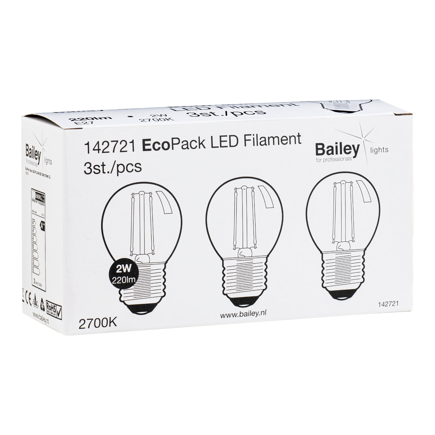 Bailey - 142721 - EcoPack 3pcs LED FIL G45 E27 2W (22W) 220lm 827 Clear