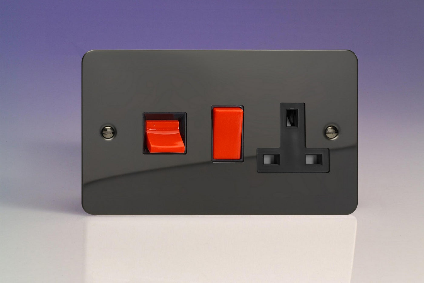 Varilight XFI45PB - 45A Cooker Panel with 13A Double Pole Switched Socket Outlet (Red Rocker)