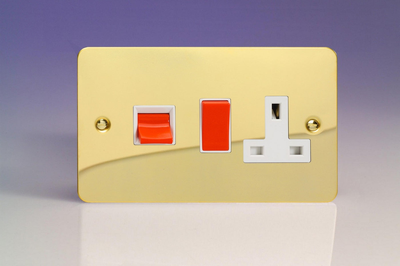 Varilight XFV45PW - 45A Cooker Panel with 13A Double Pole Switched Socket Outlet (Red Rocker)