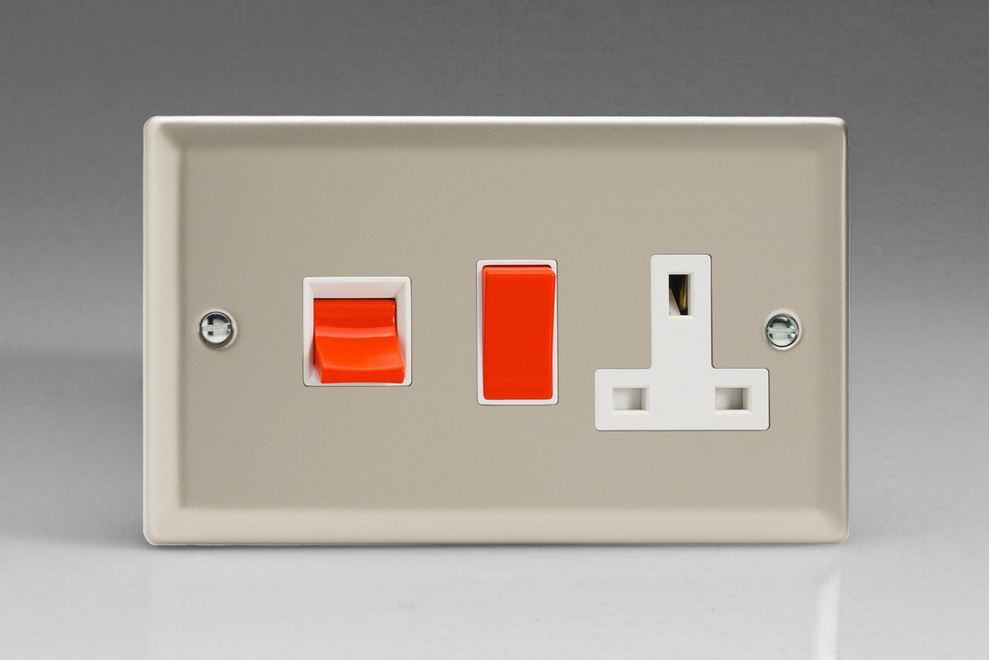 Varilight XN45PW - 45A Cooker Panel with 13A Double Pole Switched Socket Outlet (Red Rocker)