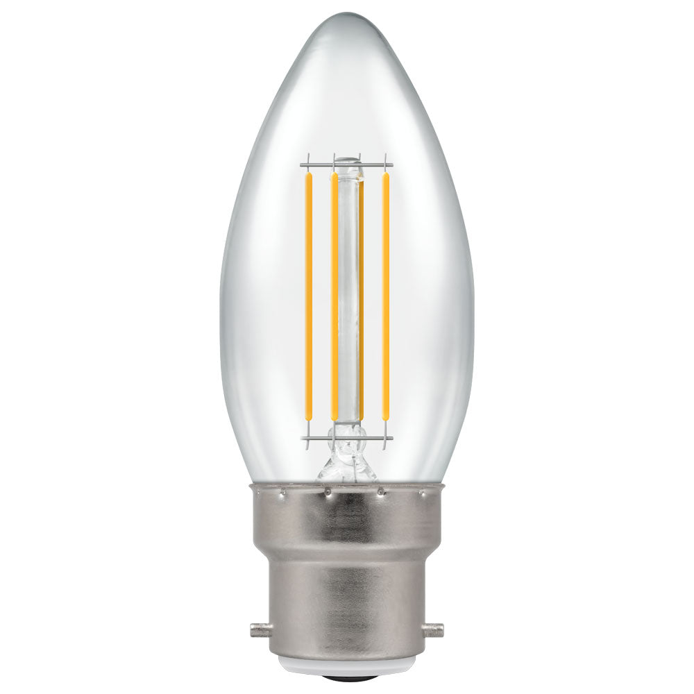 Crompton LED Filament Candle 5W 240V Very Warm White B22d ClearEnergy saving LED replacement lamp featuring LED filament technologyto closely resemble the look and feel of a traditional incandescent lamp.