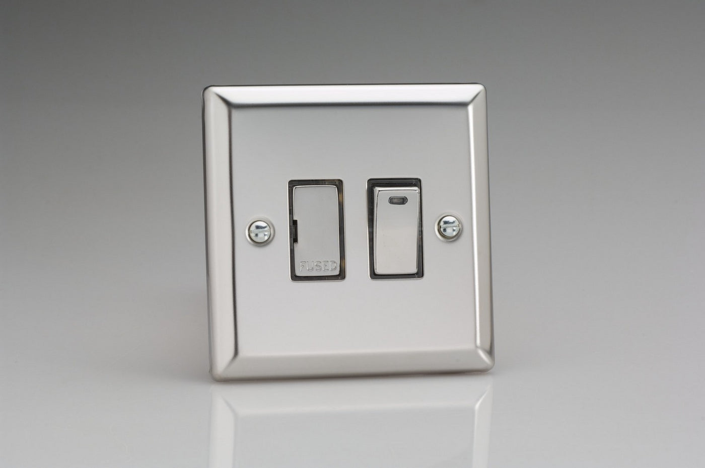 13A Switched Fused Spur + Neon , Double pole switching, Neon indicator light, Neon indicator light.