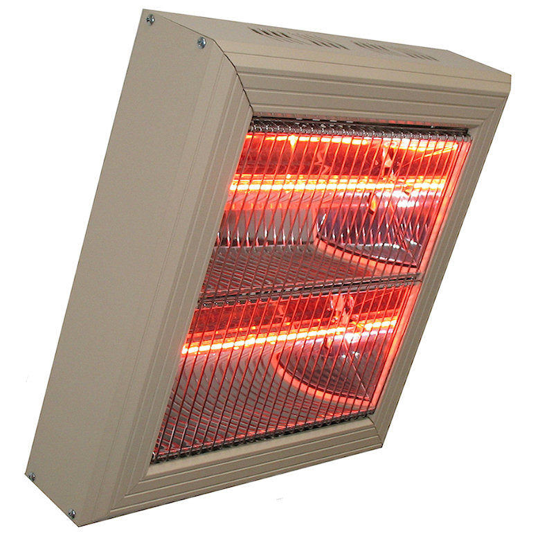 The units can be wall mounted or ceiling suspended, and the 4kW and 6kW versions come in single and three phase options. They are manufactured from aluminium, and are finished in a neutral ivory powder coat finish. All heaters are fitted with high efficiency gold shortwave lamps and guards come as standard with all models.