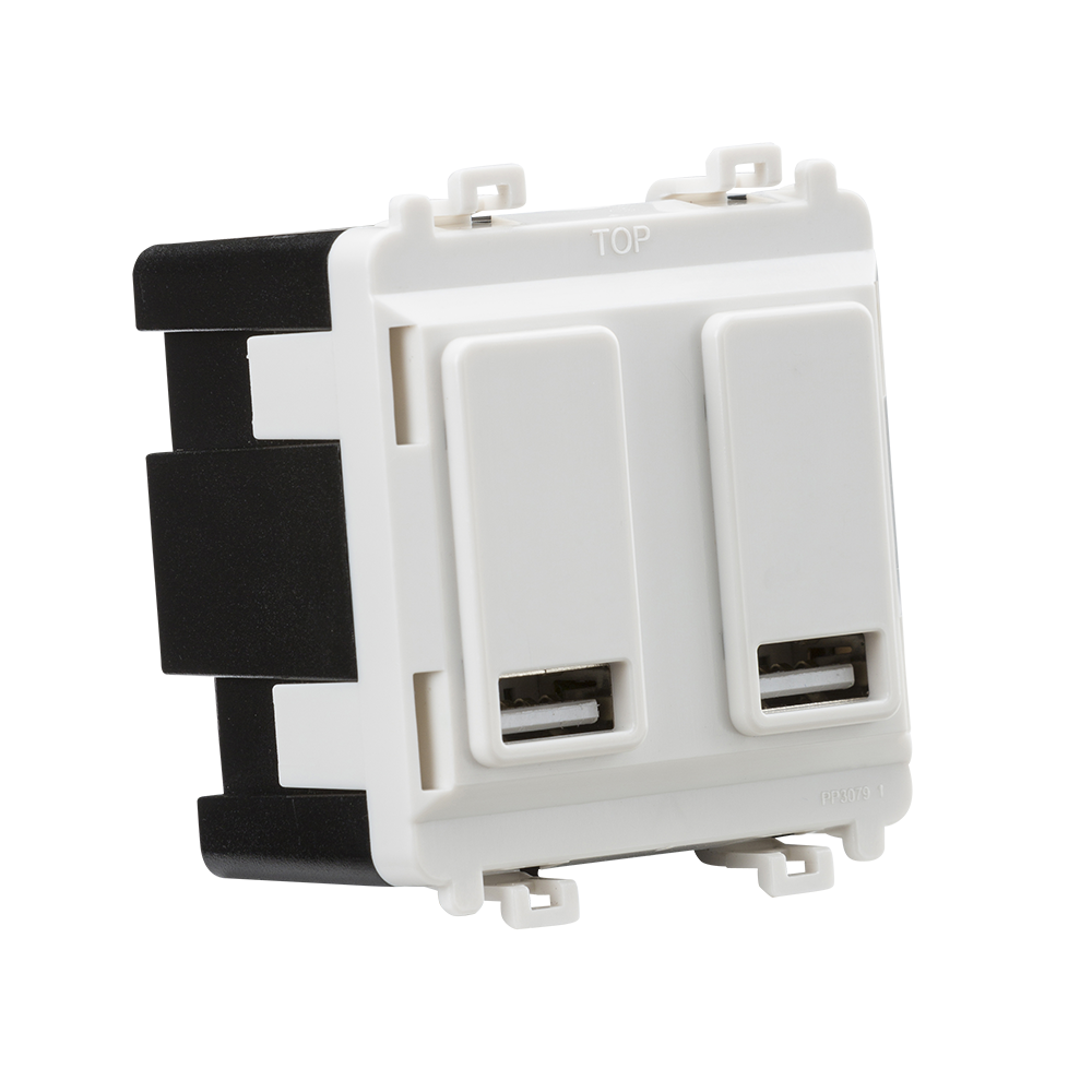 Knightsbridge GDM016U Dual USB charger module (2 x grid positions) 5V 2.4A (shared) - white
