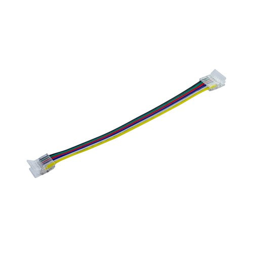 2-way connector with 150mm wire between the connector terminals for use with 12mm width IP20 RGB+CCT LED Strips. Attach one LED strip to each connector end. Maximum connected total power of LED strip per connector is 70W at 24V supply or 36W at 12V supply. This connector can be only used once. It is not suitable for being crimped, released and re-crimped on the same section of strip. Not suitable for 48V supply.