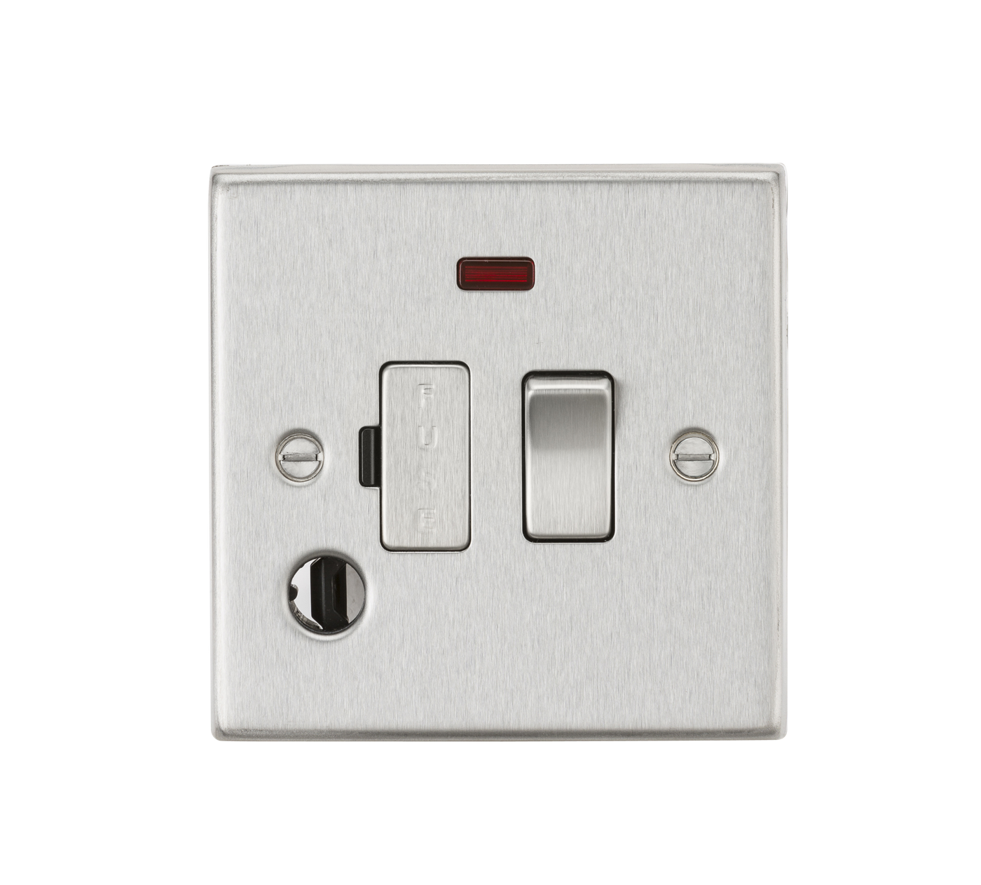 Knightsbridge CS63FBC 13A Switched Fused Spur Unit with Neon & Flex Outlet - Square Edge Brushed Chrome
