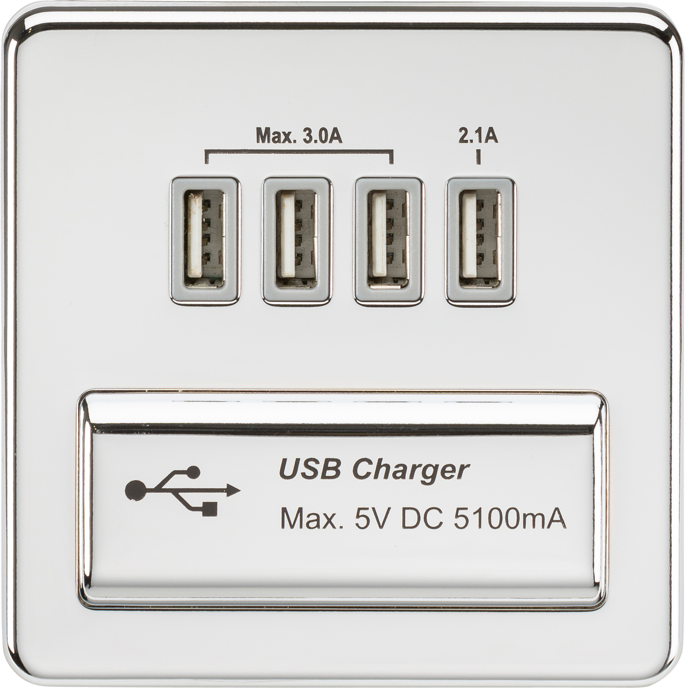 Knightsbridge SFQUADPCG Screwless Quad USB charger Outlet (5.1A) - Polished chrome with grey insert