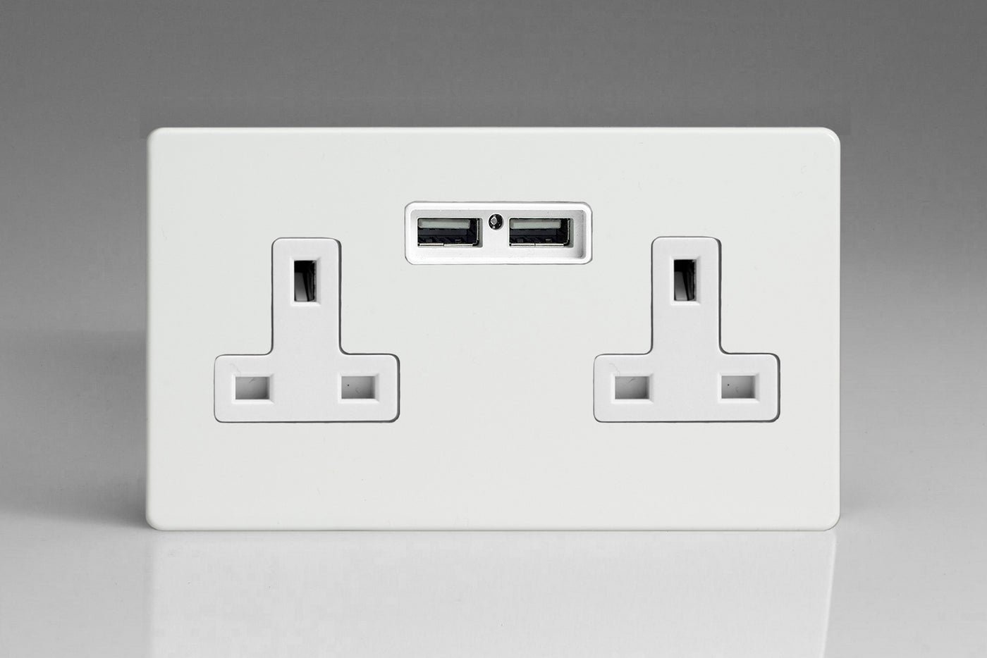 Varilight XDQ5U2WS - 2-Gang 13A Unswitched Socket + 2x5V DC 2100mA USB Charging Ports