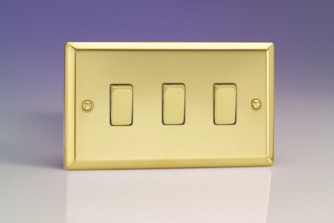 Varilight XV93D - 3-Gang 10A 1- or 2-Way Rocker Switch (Twin Plate) with Metal Rockers