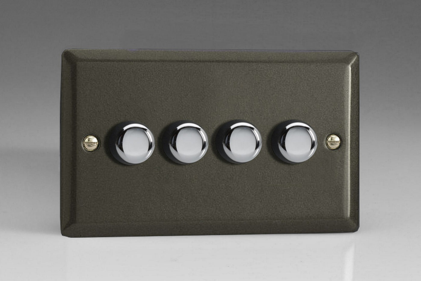 Varilight HP44 - 4-Gang 2-Way Push-On/Off Rotary Dimmer 4 x 40-250W (Twin Plate)