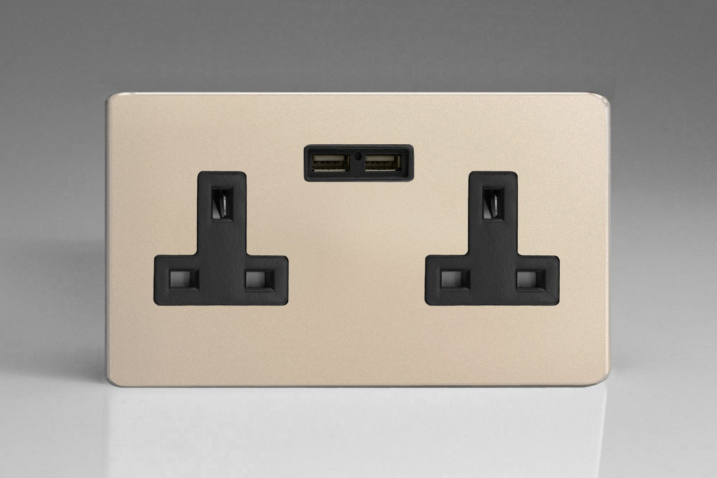 Varilight XDN5U2BS - 2-Gang 13A Unswitched Socket + 2x5V DC 2100mA USB Charging Ports
