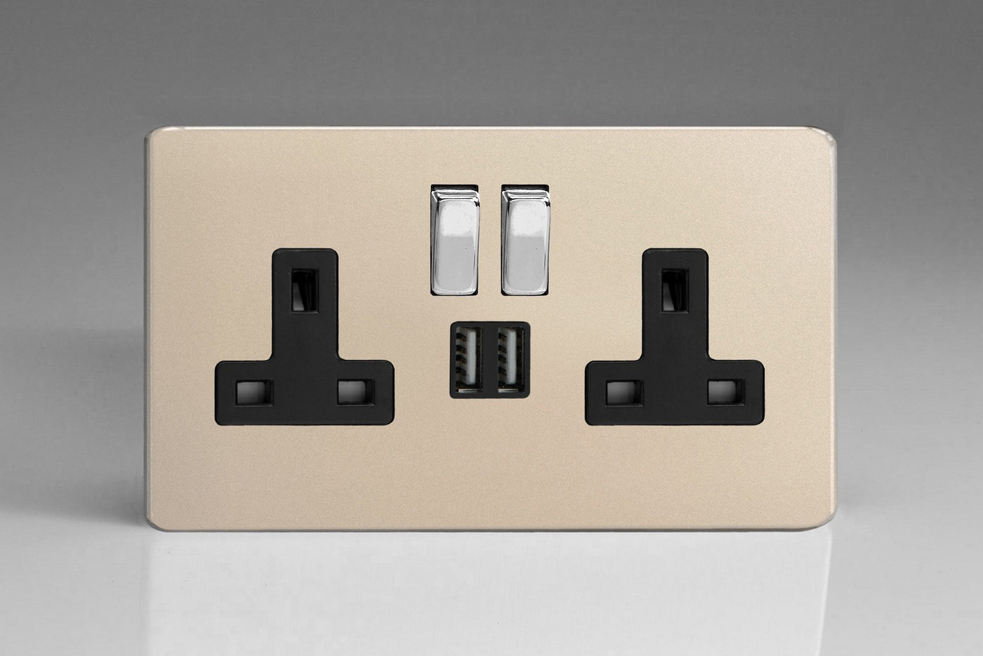 Varilight XDN5U2SBS - 2-Gang 13A Single Pole Switched Socket with Metal Rockers + 2x5V DC 2100mA USB Charging Ports