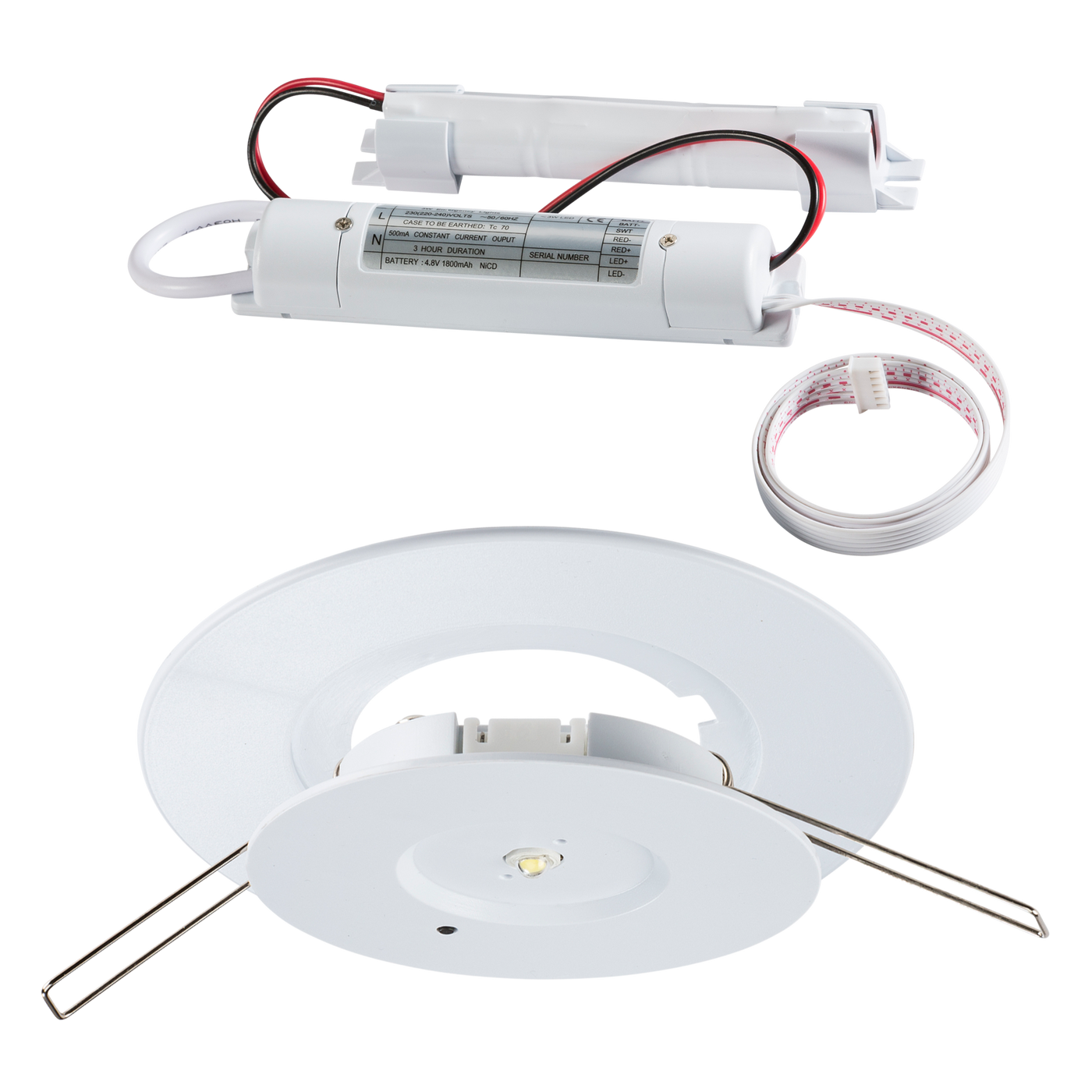 230V 3W LED Emergency Downlight. Designed for commercial retail and open areas as an emergency light source . Adjustable trim allows for two cut-out diameters .