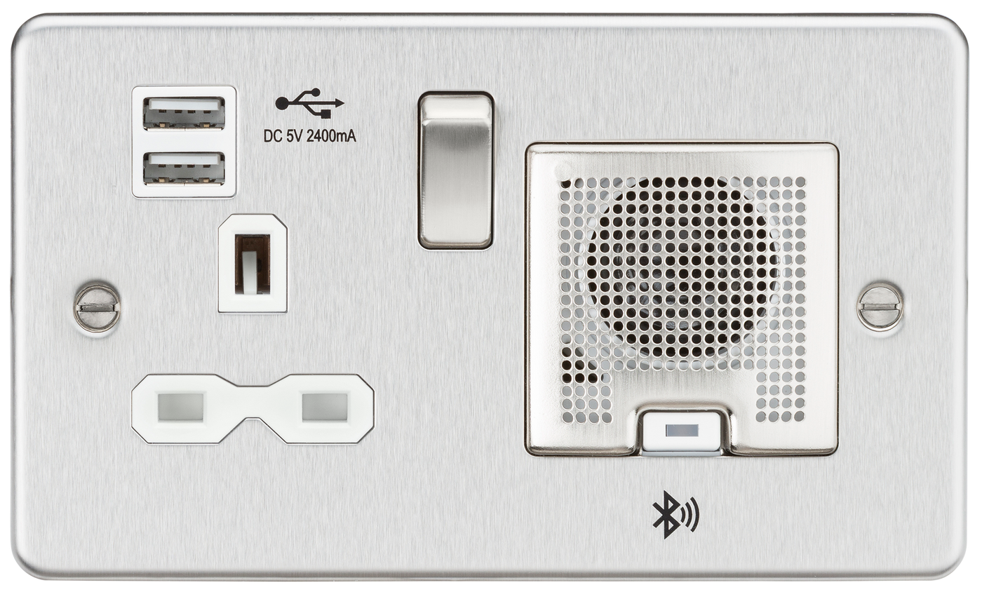 Knightsbridge FPR9905BCW - 13A socket, USB chargers (2.4A) and Bluetooth Speaker - Brushed Chrome