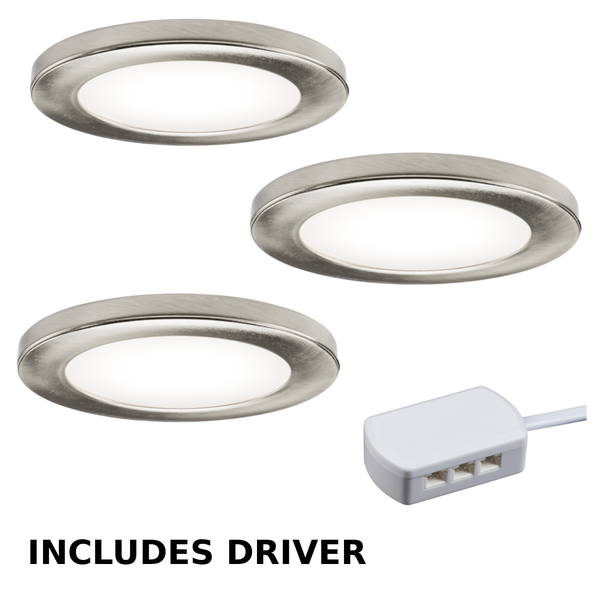 Knightsbridge UNDKIT3BCCW 230V IP20 2.5W LED Dimmable Under Cabinet Lights in Brushed Chrome - Pack of 3 - 4000K