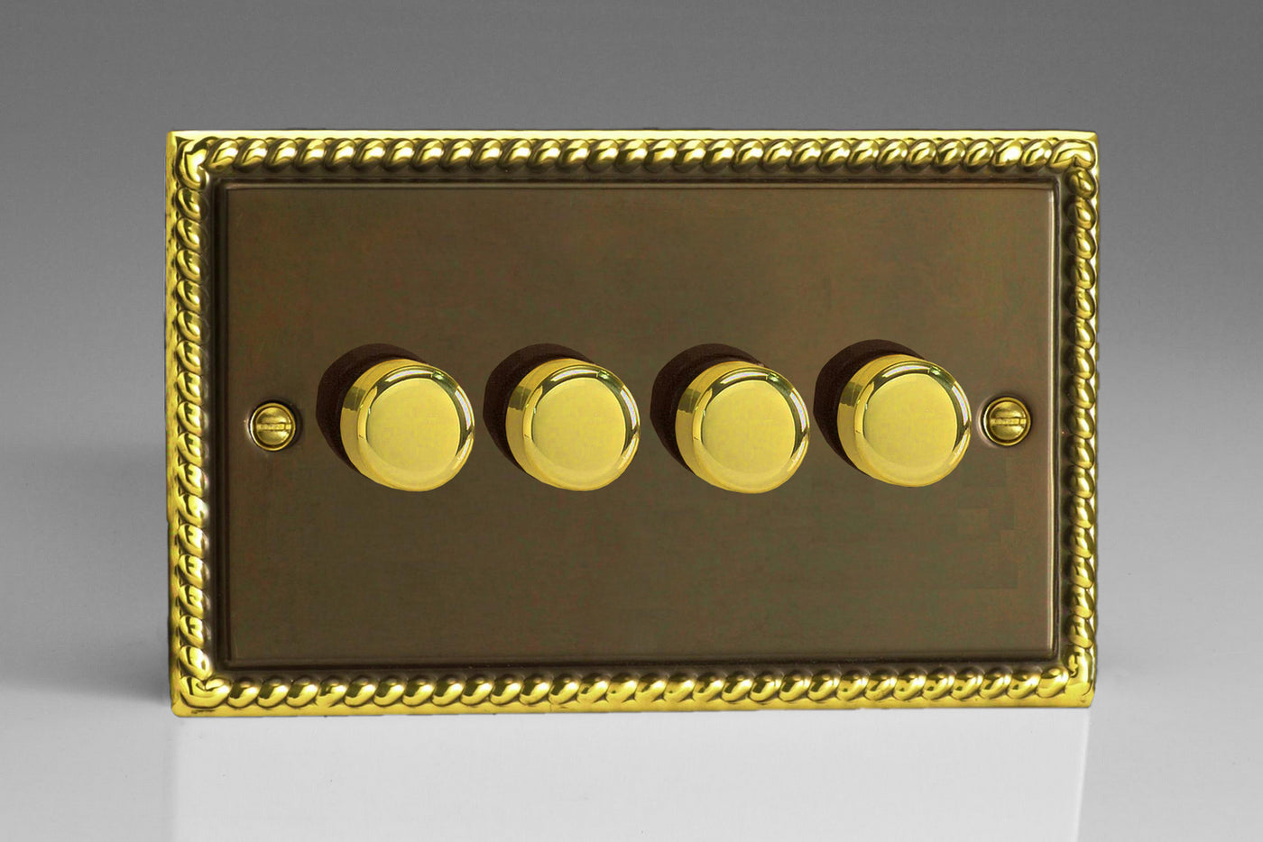 Varilight HA44 - 4-Gang 2-Way Push-On/Off Rotary Dimmer 4 x 40-250W (Twin Plate)