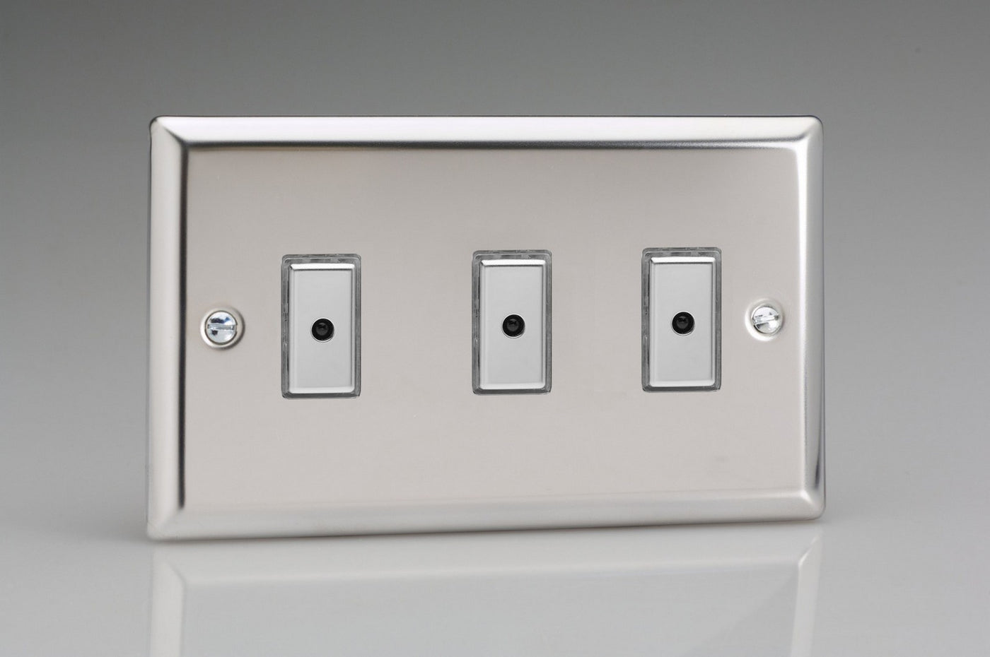 Varilight JCE103 - 3-Gang 1-Way V-Pro Multi-Point Remote/Tactile Touch Control Master LED Dimmer 3 x 0-100W (1-10 LEDs) (Twin Plate)