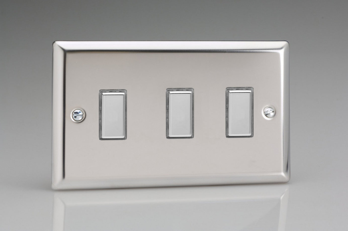 Varilight JCES003 - 3-Gang Tactile Touch Control Dimming Slave for use with Multi-Point (formerly Eclique2) Master on 2-Way Circuits (Twin Plate)