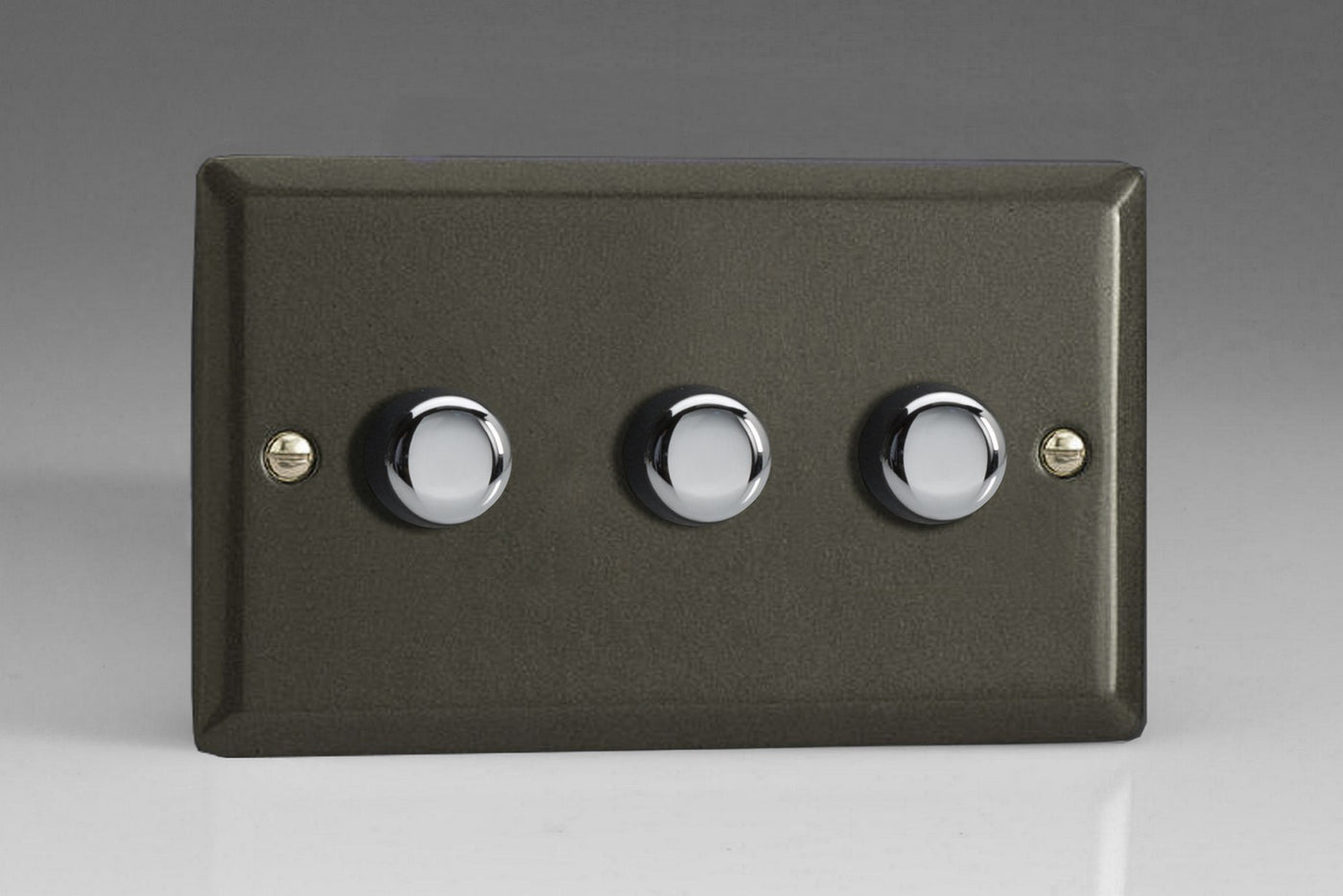 Varilight JPDP303 - 3-Gang 2-Way Push-On/Off Rotary LED Dimmer 3 x 0-120W (1-10 LEDs) (Twin Plate)