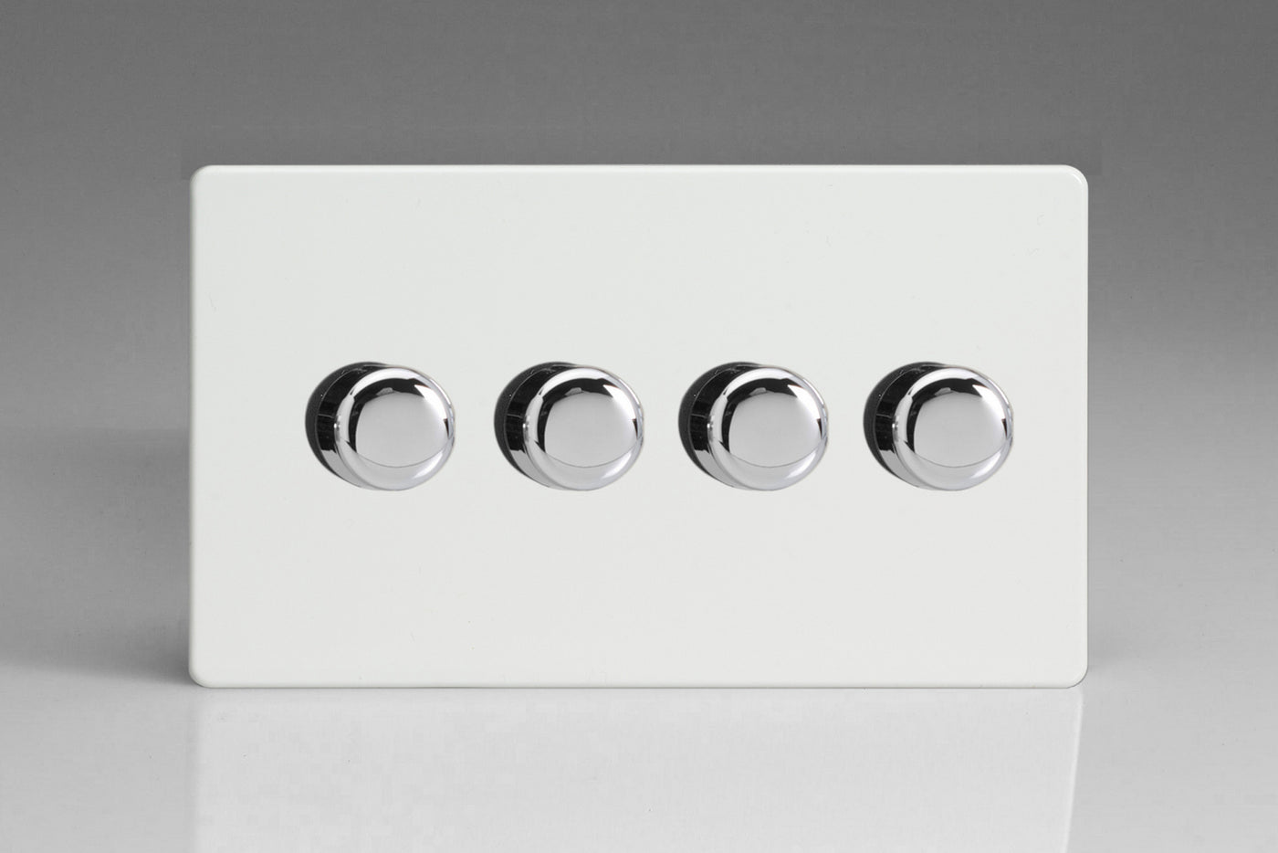 Varilight KDQDP184S - 4-Gang 2-Way Push-On/Off Rotary LED Dimmer 4 x 15-180W (max 20 LEDs) (Twin Plate)