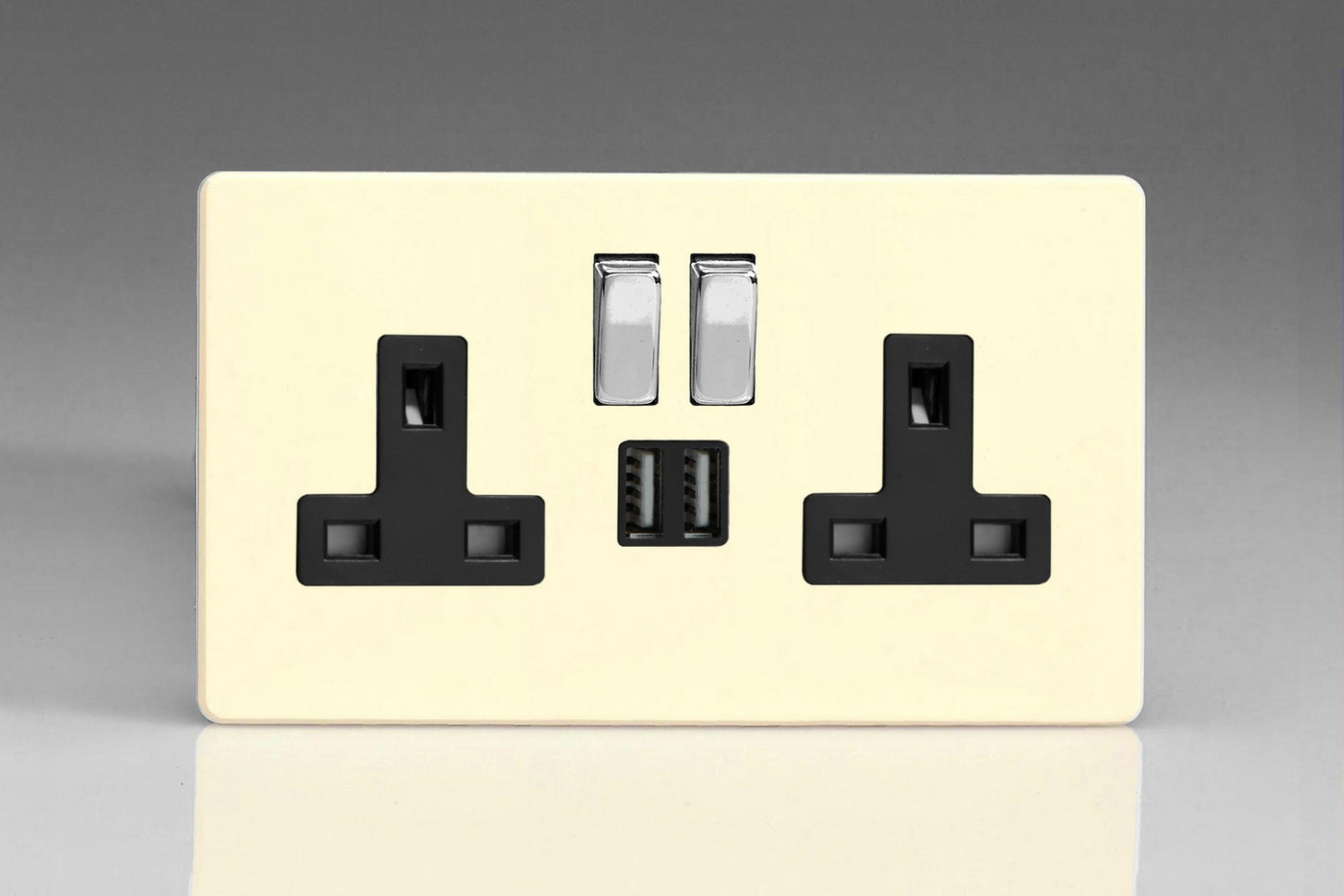 Varilight XDY5U2SBS.PD - 2-Gang 13A Single Pole Switched Socket with Metal Rockers + 2 5V DC 2100mA USB Charging Ports