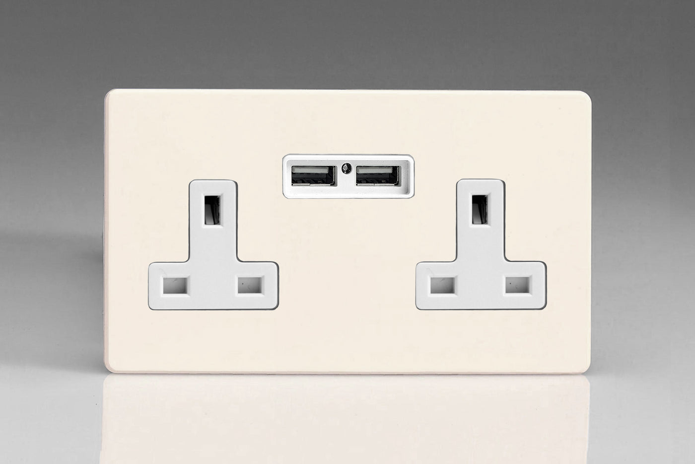 Varilight XDY5U2WS.PD - 2-Gang 13A Single Pole Switched Socket + 2 5V DC 2100mA USB Charging Ports