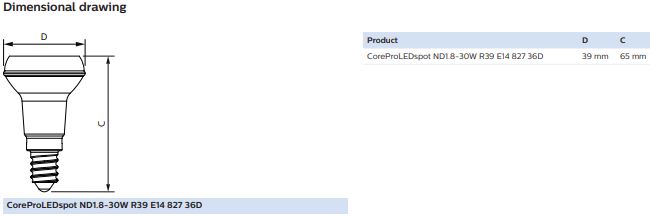 81171900 - Philips - CoreProLEDspot ND 1.8-30W R39 E14 827 36D