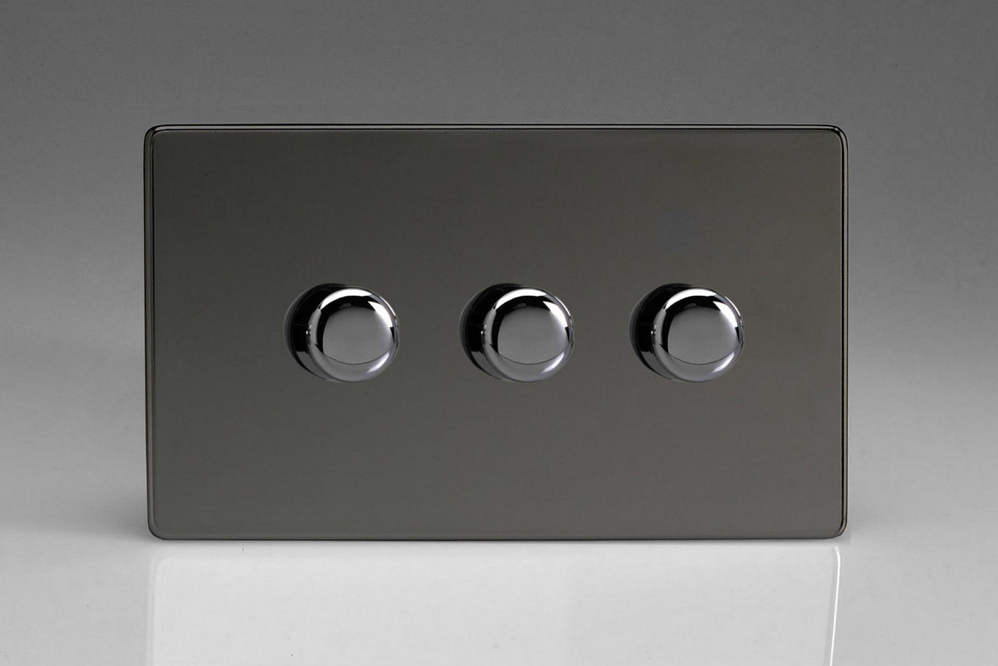Varilight JDIDP503S - 3-Gang 2-Way Push-On/Off Rotary LED Dimmer 3 x 0-250W (Max 30 LEDs) (Twin Plate)