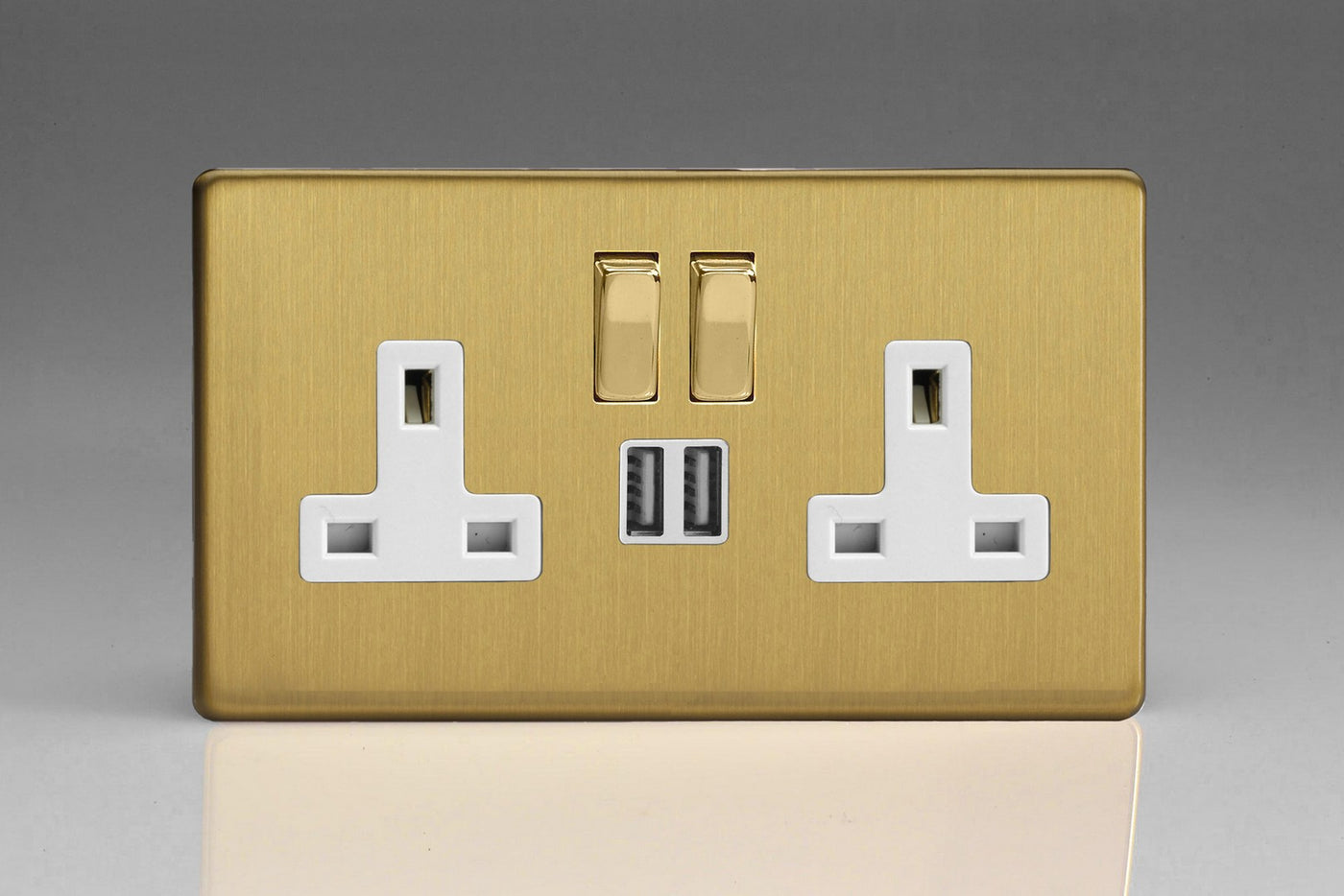 Varilight XDB5U2SWS - 2-Gang 13A Single Pole Switched Socket with Metal Rockers + 2x5V DC 2100mA USB Charging Ports