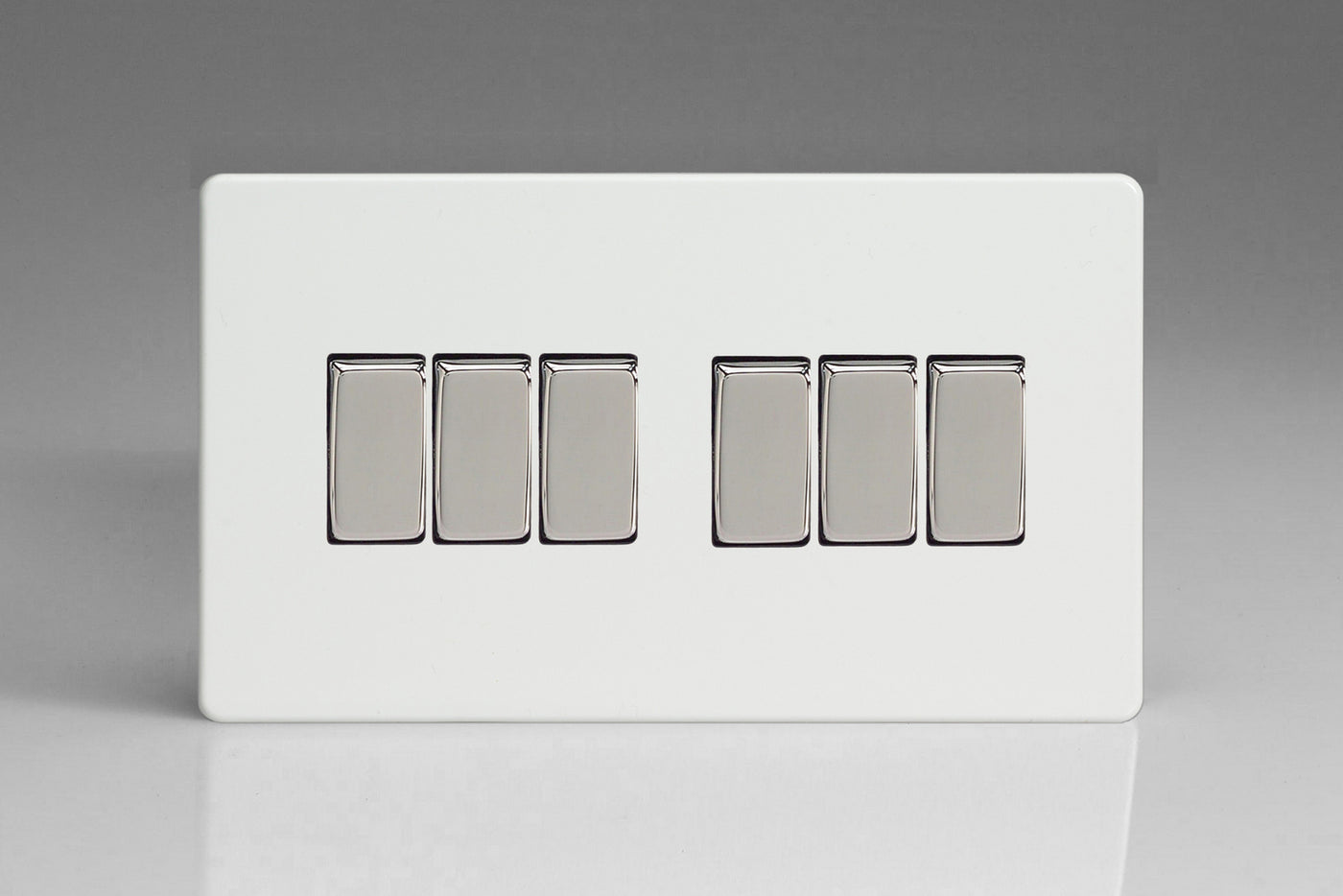 Varilight XDQ96S - 6-Gang 10A 1- or 2-Way Rocker Switch (Twin Plate)